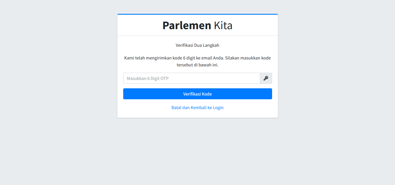 Fitur ini mungkin diaktifkan oleh Admin untuk keamanan tambahan. Jika ya, Anda akan melihat halaman ini setelah login.
