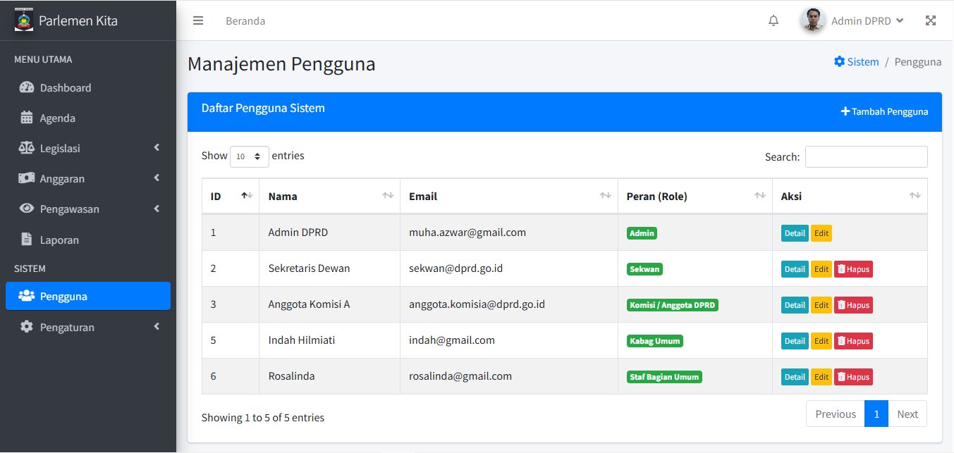 Di sini Anda dapat menambah, mengubah, dan menghapus akun pengguna yang bisa login ke sistem.