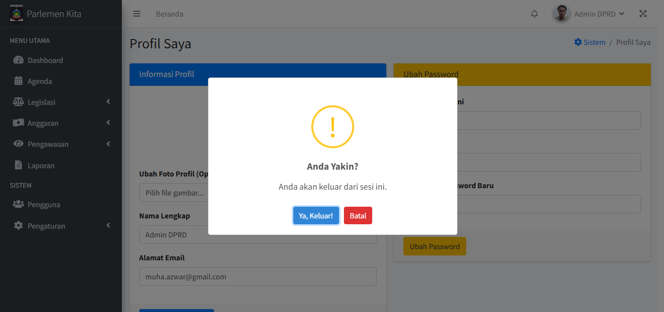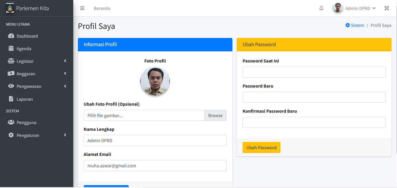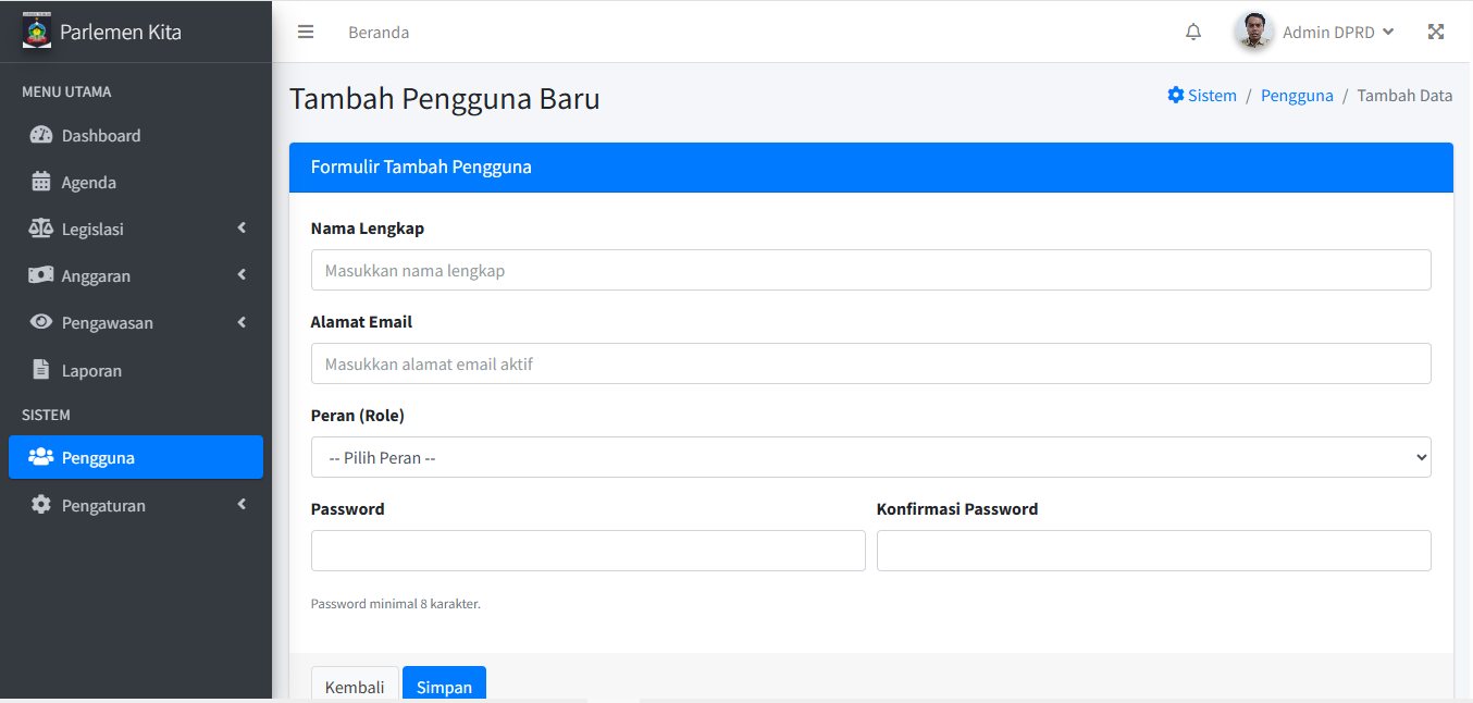 Di sini Anda dapat menambah, mengubah, dan menghapus akun pengguna yang bisa login ke sistem.